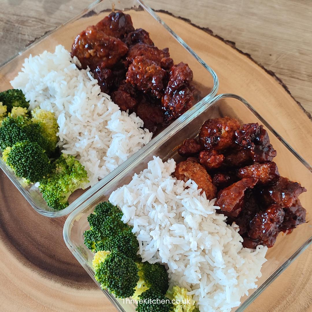 Bang bang Chicken with herby, lemon, garlic rice & a side of steamed Broccoli